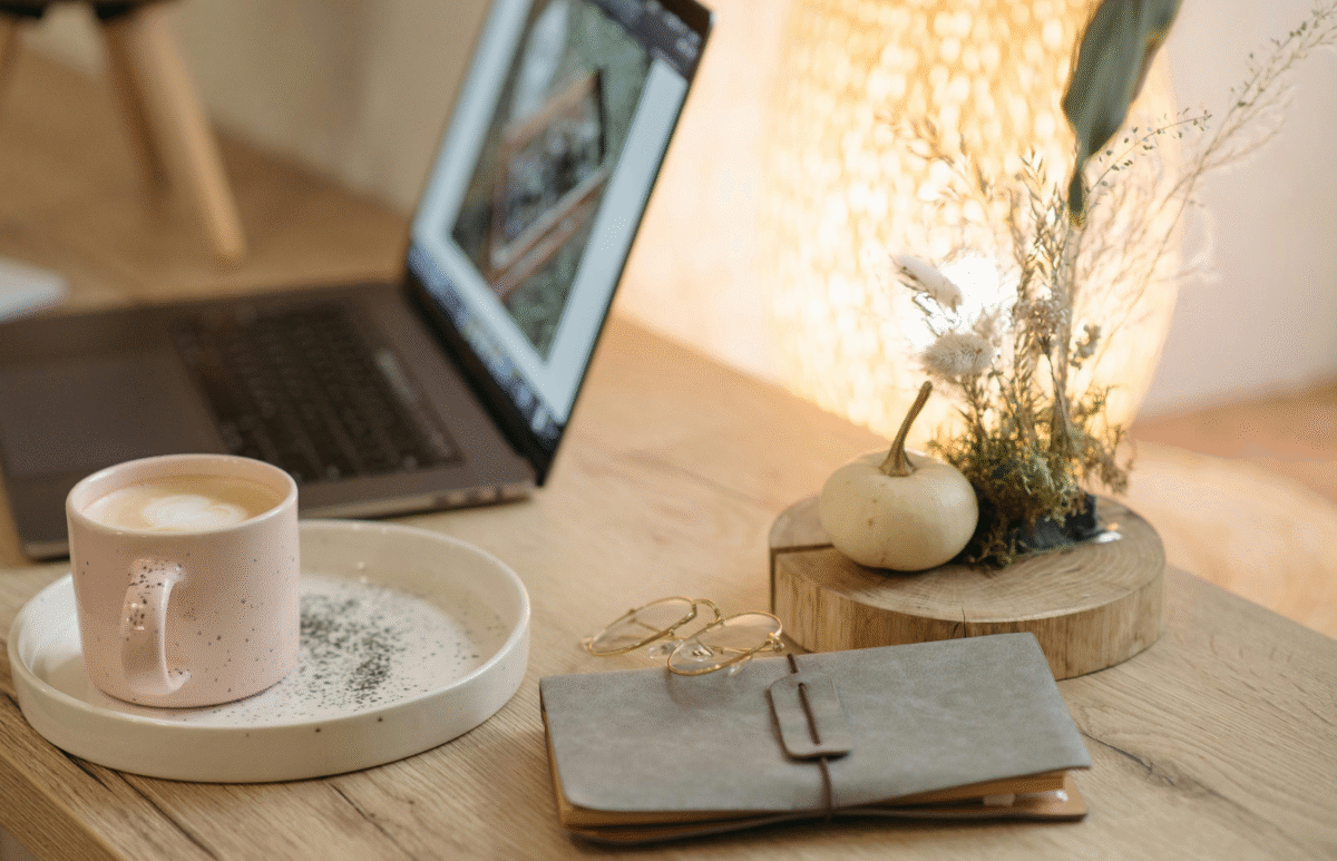 3) Update Your Lighting As we start to lose daylight earlier, good lighting becomes essential. Consider adding a warm desk lamp or adjusting your current setup to reduce eye strain. Good lighting can make your workspace feel cozier, more inviting, and creates a focused atmosphere, especially for evening work sessions.